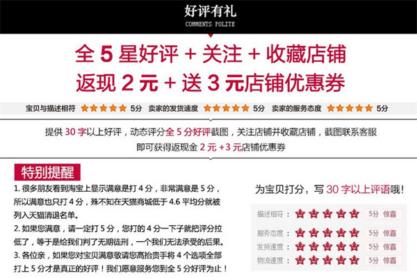 對于消費者來說,從網(wǎng)上購物最擔心的一件事情就是產(chǎn)品質(zhì)量到底好不好,因為從網(wǎng)上購物產(chǎn)品是不能直接觸摸和看到的,在這樣的情況下,通過看產(chǎn)品的評價,在一定程度上可以看出這個產(chǎn)品的質(zhì)量到底好不好,因此好評對店鋪來說就很重要的,因為很多消費者在購買產(chǎn)品的時候看到好評就會有購買的意向,如果是差評的話,那么大概率是不會購買的,所以一個好評是可以提高店鋪銷售量的。